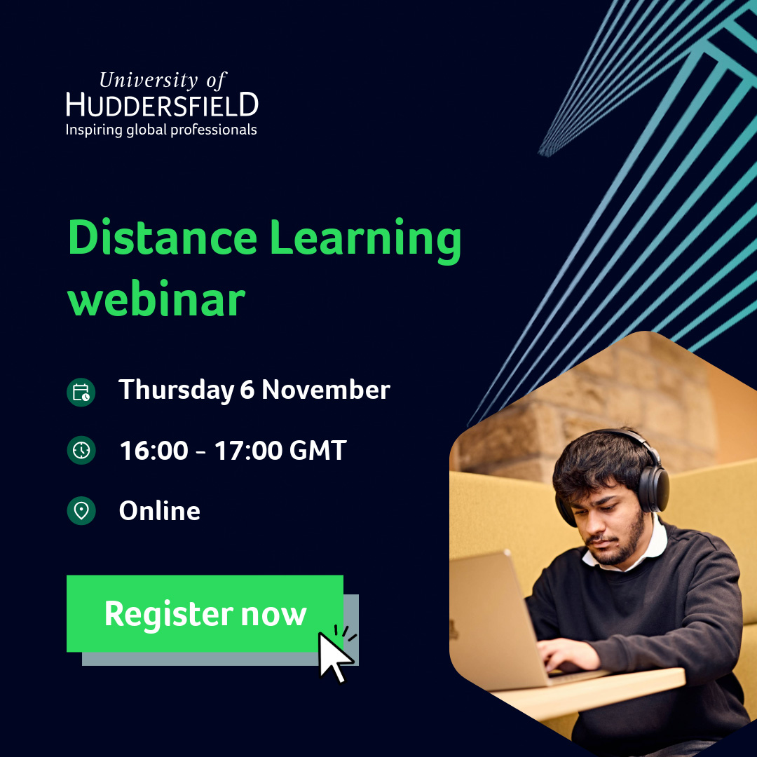 Our online courses at the University of Huddersfield are designed by experienced practitioners in collaboration with our academics to ensure that your course content is engaging, interactive and applicable to your current or desired career. Some of our courses hold professional accreditation too, so you can rest assured that you'll be developing in-demand industry skills.